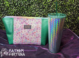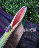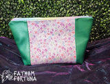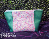 This cute and versatile zipper bag can be used to carry your makeup, toiletries, dice, wrapped snacks, first aid kit - whatever you need! Vinyl sides and fleece interfacing give this bag great structure and can stand up on it's own. The bag is approximately 13 inches wide x 7 inches tall, with a 4 inch boxed bottom, and is lined with water-resistant canvas!