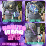 This convertible boxy On The Go bag is excellent for the person who likes to carry a little bit more than the essentials, and likes to have some flexibility on wear to fit whatever vibe you're going for. This bag can be worn as a crossbody purse, as a bum bag/fanny pack, OR tightened up against your back or chest, keeping it secure while you're biking/walking/other lightweight workouts!