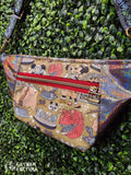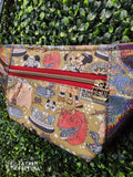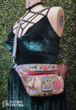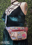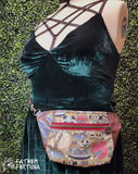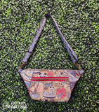 This cute convertible bag can be worn as either a bum/hip/fanny pack or a crossbody purse! Cotton accent panel with vinyl sides and back. the outside measures about 13x6.5 with the inside pocket measuring 8x6. Great for quick errands, shows, or if you just don't like to carry a ton! And with a strap that adjusts the length of the whole thing from 37"-55". it can be worn on the hip or off the shoulder with ease! (Strap can be shortened before shipping upon request! If you need shorter than 37-55", just leave me a note in the message to seller at checkout with your desired length (measure around your hips or wherever you'd like it to sit. I can't make the strap longer once it's constructed, but shortening is easy. May add a few extra processing days, and shortening the strap significantly may not allow it to work as a crossbody bag.)