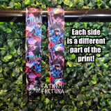This cute wristlet fob keychain is made of buttery soft 1" wide sublimated lanyard with standard keychain fob hardware and split keyring.. Sublimated on both sides, and is approx 6.5" tall (when flat) with the wearable loop portion being ~11ish inches around.