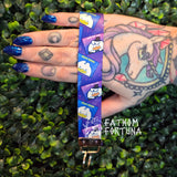 This cute wristlet fob keychain is made of buttery soft 1" wide sublimated lanyard with standard keychain fob hardware and split keyring.. Sublimated on both sides, and is approx 6.5" tall (when flat) with the wearable loop portion being ~11ish inches around.