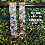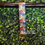 This cute wristlet fob keychain is made of buttery soft 1" wide sublimated lanyard with standard keychain fob hardware and split keyring.. Sublimated on both sides, and is approx 6.5" tall (when flat) with the wearable loop portion being ~11ish inches around.