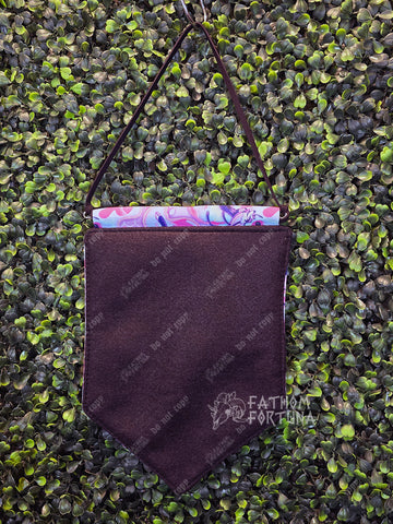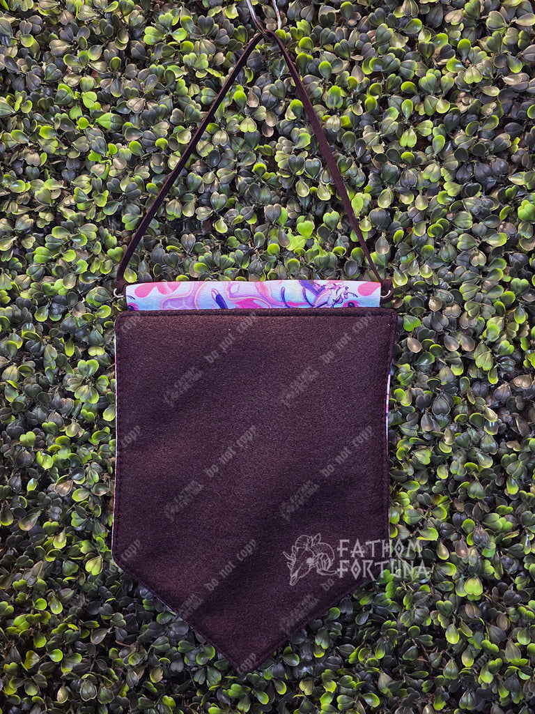 This gorgeous little pin banner has a printed canvas front and a thick felt back to give your pin collection the support it needs! Supporting the banner across the top is a 1/4" dowel with eye hooks in both ends, which help it hang from a faux-suede cord.