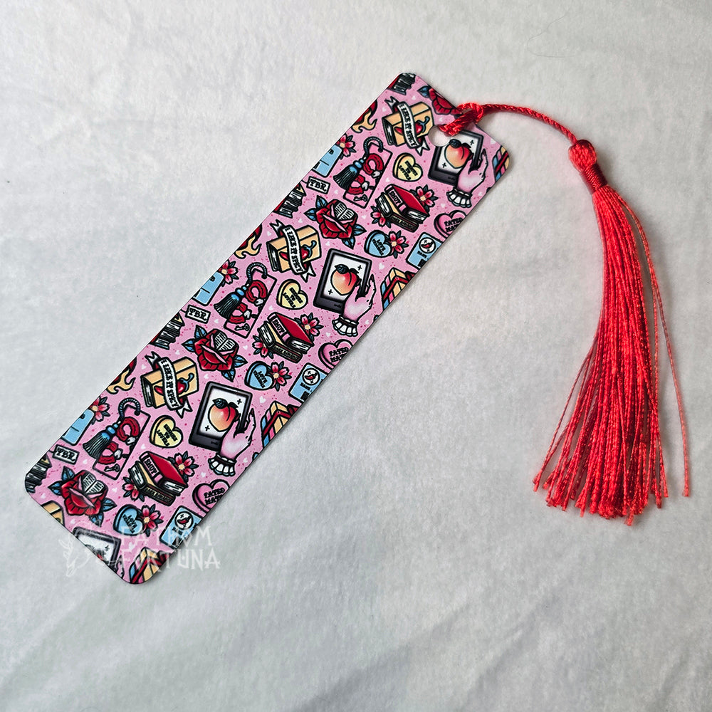 These sturdy aluminum sublimation printed bookmarks will make sure you don't ever lose your spot in that great story you're reading again! Printed on a single side with a blank metal back, these bookmarks measure 1.25" x 4.75" and have a coordinating tassle. Tassle color may vary from bookmark to bookmark!