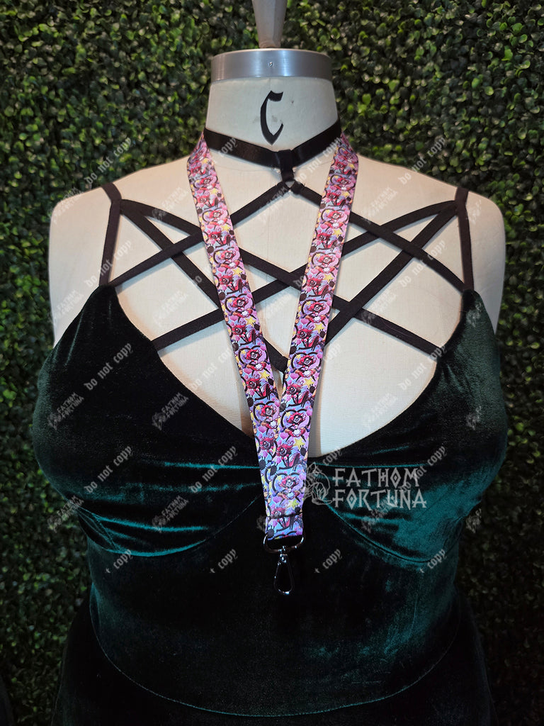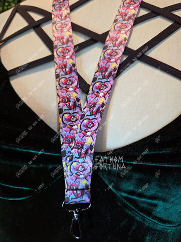 Our fun lanyards are sublimation printed in house just for you! Lanyard is made of 1 inch soft poly satin webbing with a sturdy swivel clasp at the bottom and a quick-release clip at the top - don't worry about getting snagged on things or be able to remove quickly for your cosplay photos! Lanyard is approx 37-38" around including the clasps. Our print is entirely colorfast and will not rub or wash off.