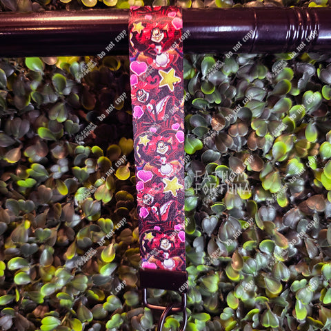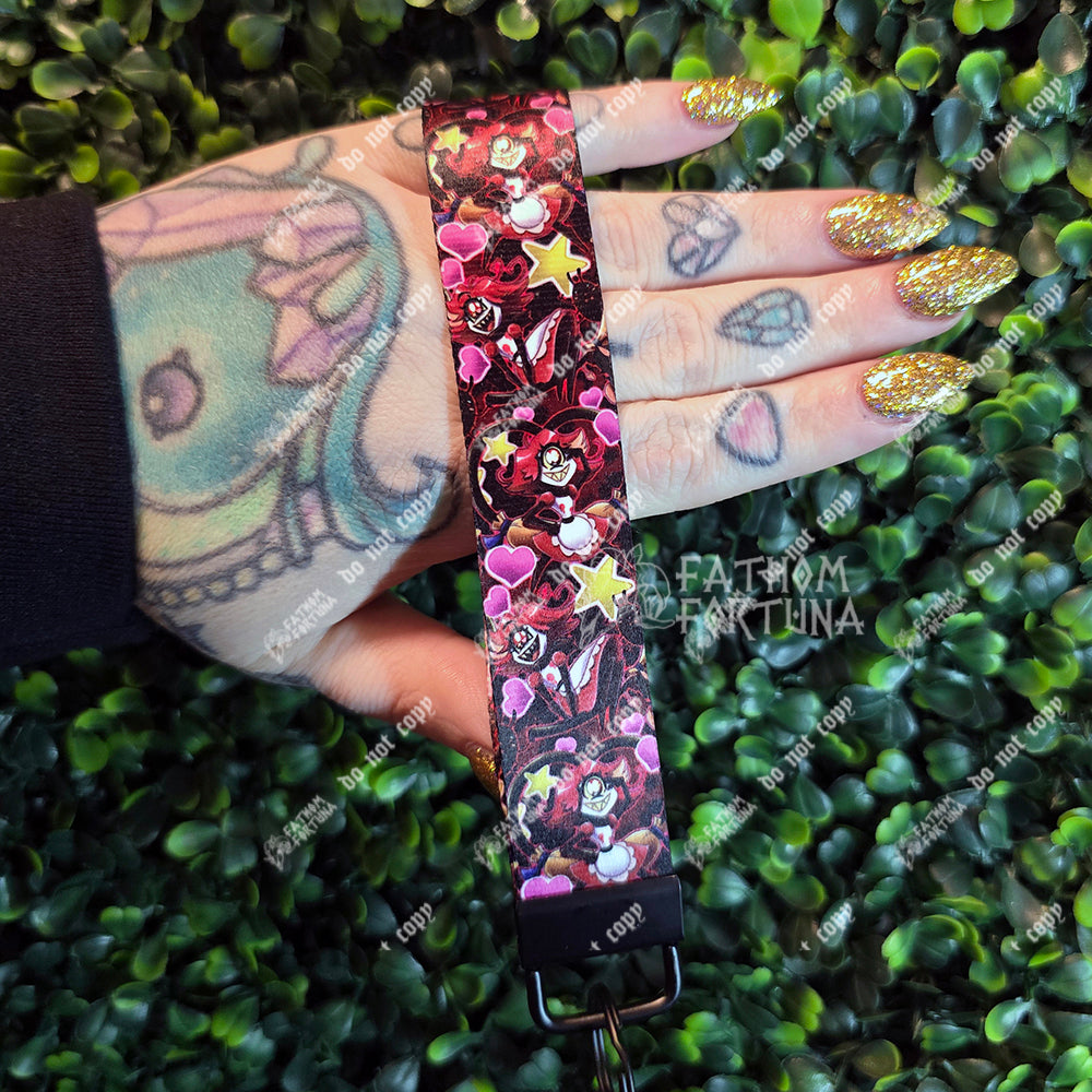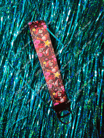 This cute wristlet fob keychain is made of buttery soft 1" wide sublimated lanyard with standard keychain fob hardware and split keyring.. Sublimated on both sides, and is approx 6.5" tall (when flat) with the wearable loop portion being ~11ish inches around.
