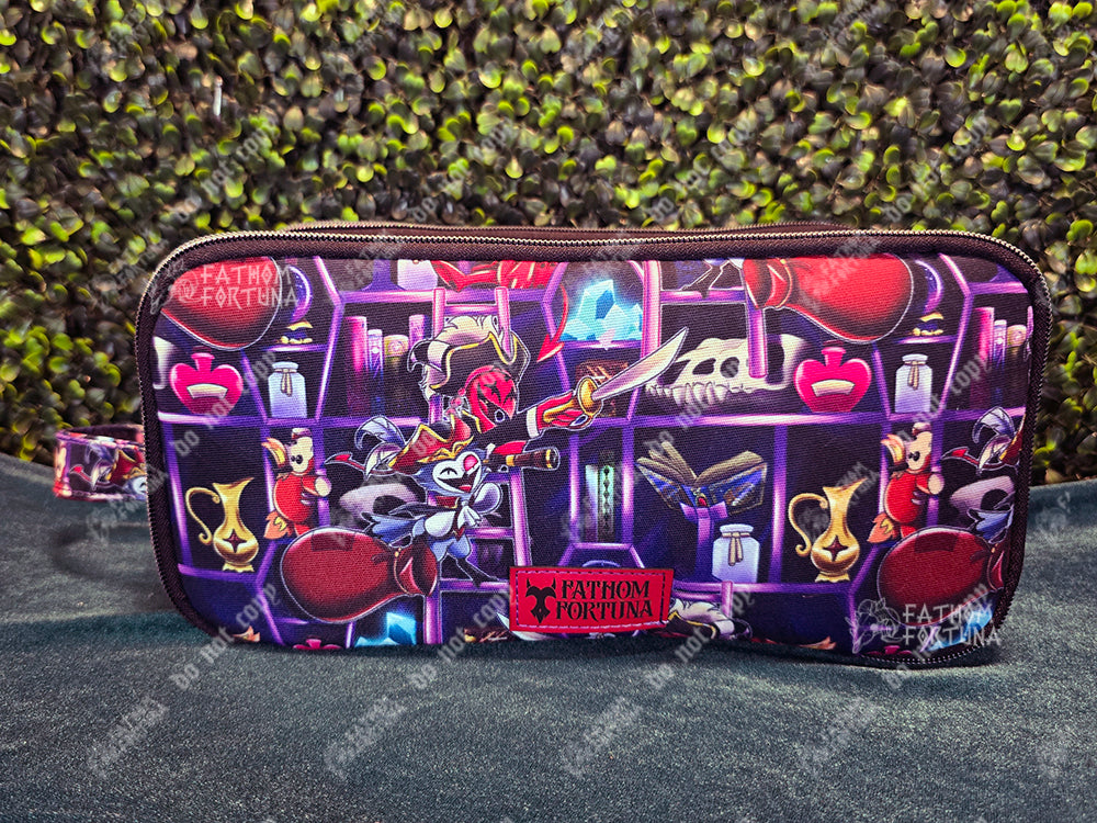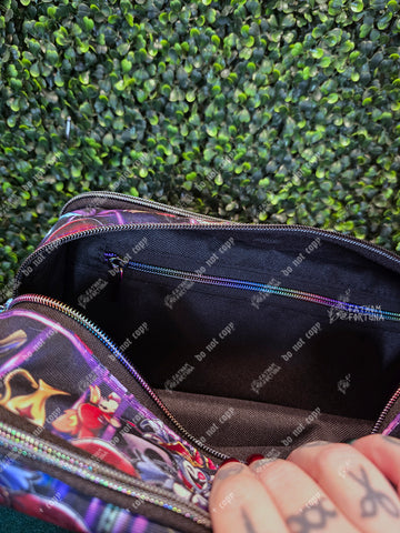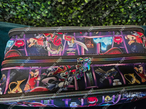 This boxy little bag is GREAT for your makeup and toiletries, for travel, or even as a project bag! Measuring approx 11 1/4" x 5 1/8" x 5 1/4", this little bag is made with a printed canvas exterior, a water resistant canvas interior, and three different zippered compartments.